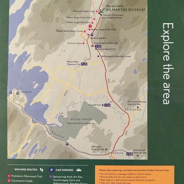 Historical and archaeological places are right on the doorstep. A short walk away are the estoteric cup and ring carvings as well as castles and ancient chapels only a short drive away. Kilmartin, a short drive or cycle away is rich in archaeological remains of Neolithic and early Bronze age monuments.