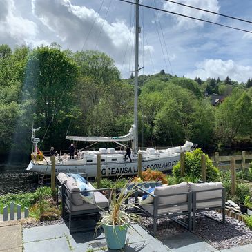 Outside, the South facing patio garden is furnished with comfortable furniture and directly overlooks the Crinan Canal, - an ideal spot to sit, relax and watch the yachts pass by.